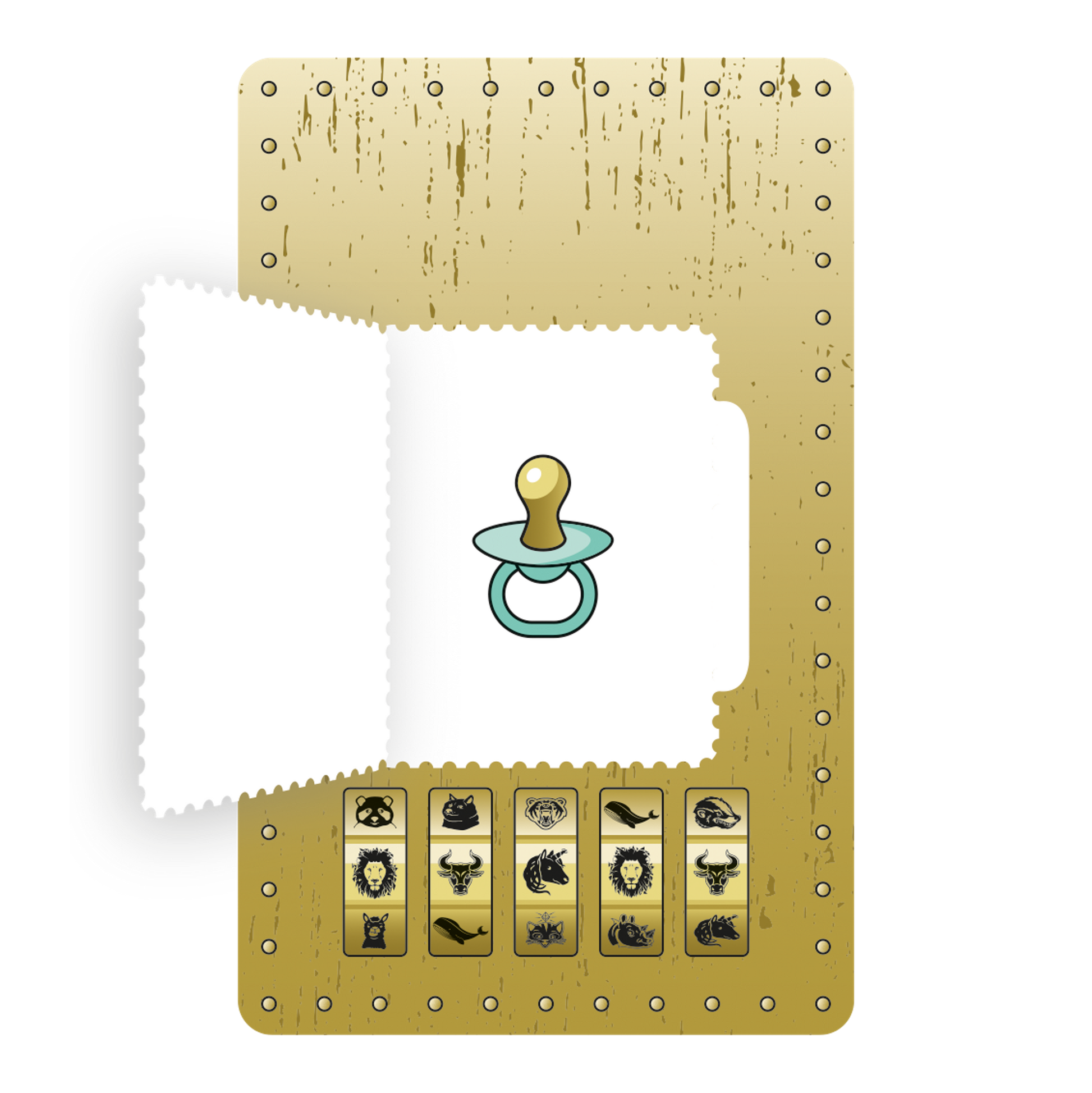 The NL crypto stamp safes are true masters of transformation. Hidden behind the stamps are one of three magical symbols: pacifier, bottle, rainbow. These symbols can be combined with animal motifs, transforming the symbol into an entirely new design.
