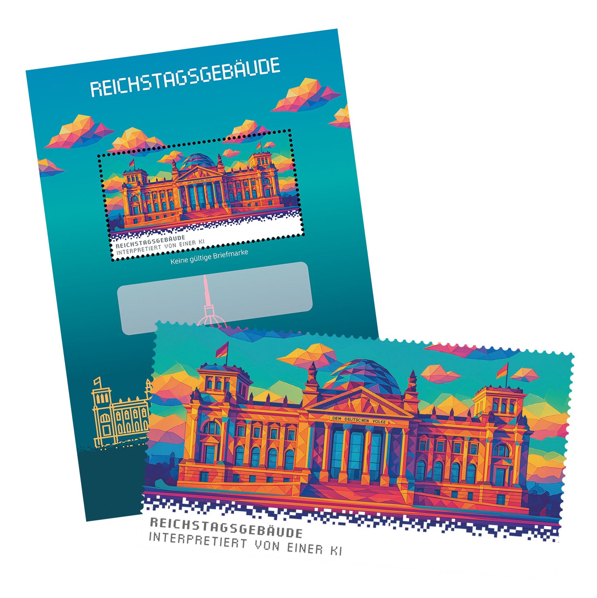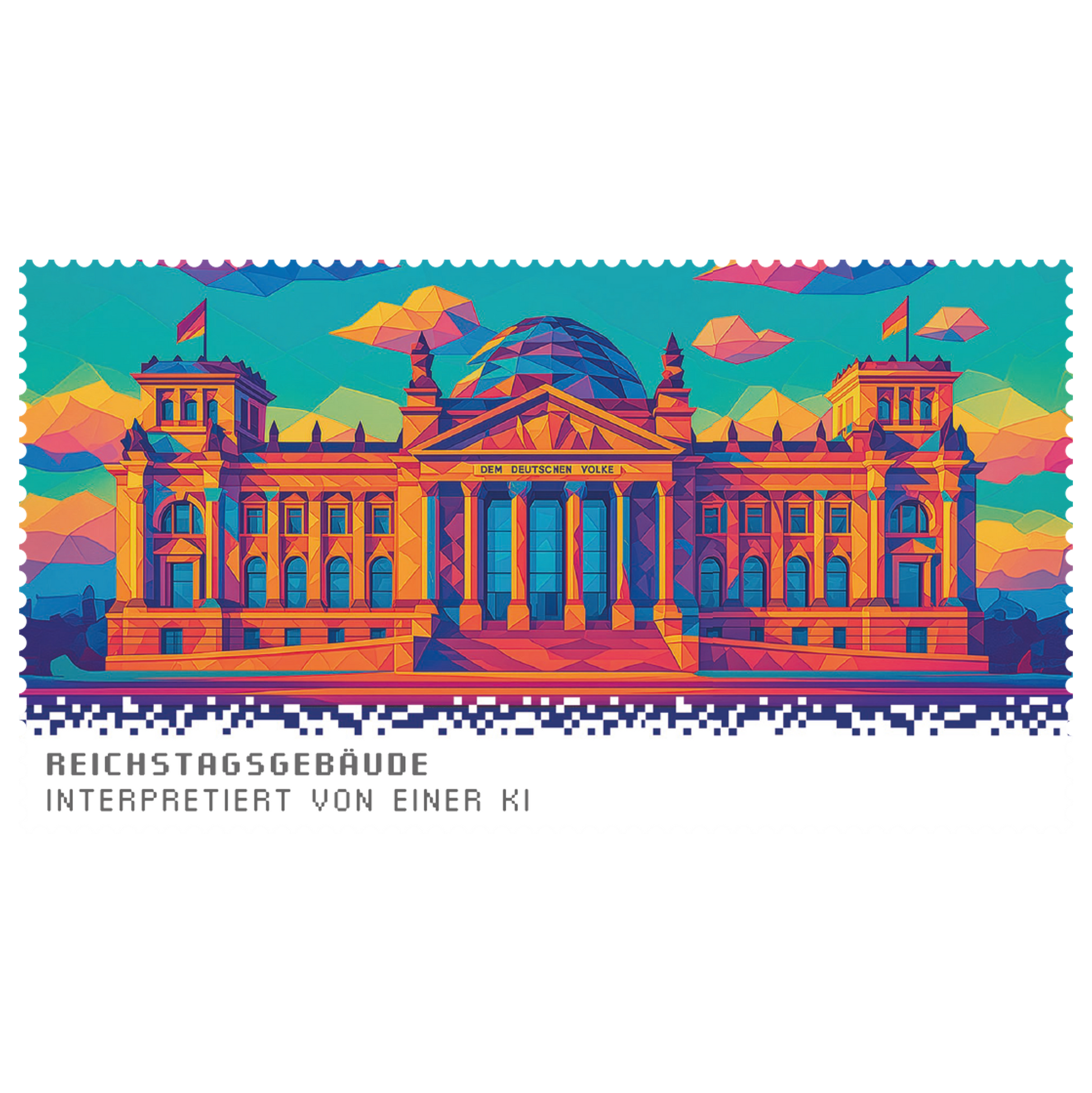 Deutsche Post – Reichstagsgebäude Berlin. Complete your collection with this sixth bonus NFT, the final piece in the crypto stamp series of historical buildings in Germany. This exclusive NFT showcases an AI-generated image of the iconic “Reichstagsgebäude,” a landmark that defines the city of Berlin.