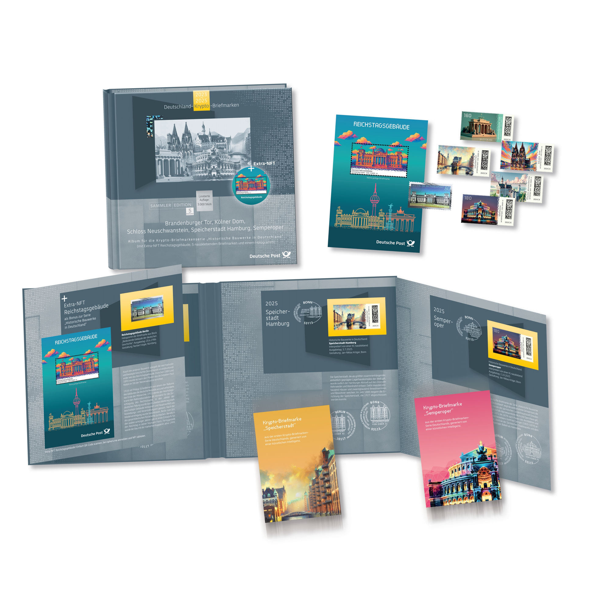 By purchasing this set, you gain ownership of a unique combination of physical and digital collectables. The booklets can be stored in the elegant collector album, while their digital counterparts live securely on the blockchain. The sixth NFT, featuring the Reichstagsgebäude, confirms your status as the owner of this special collector’s edition.
