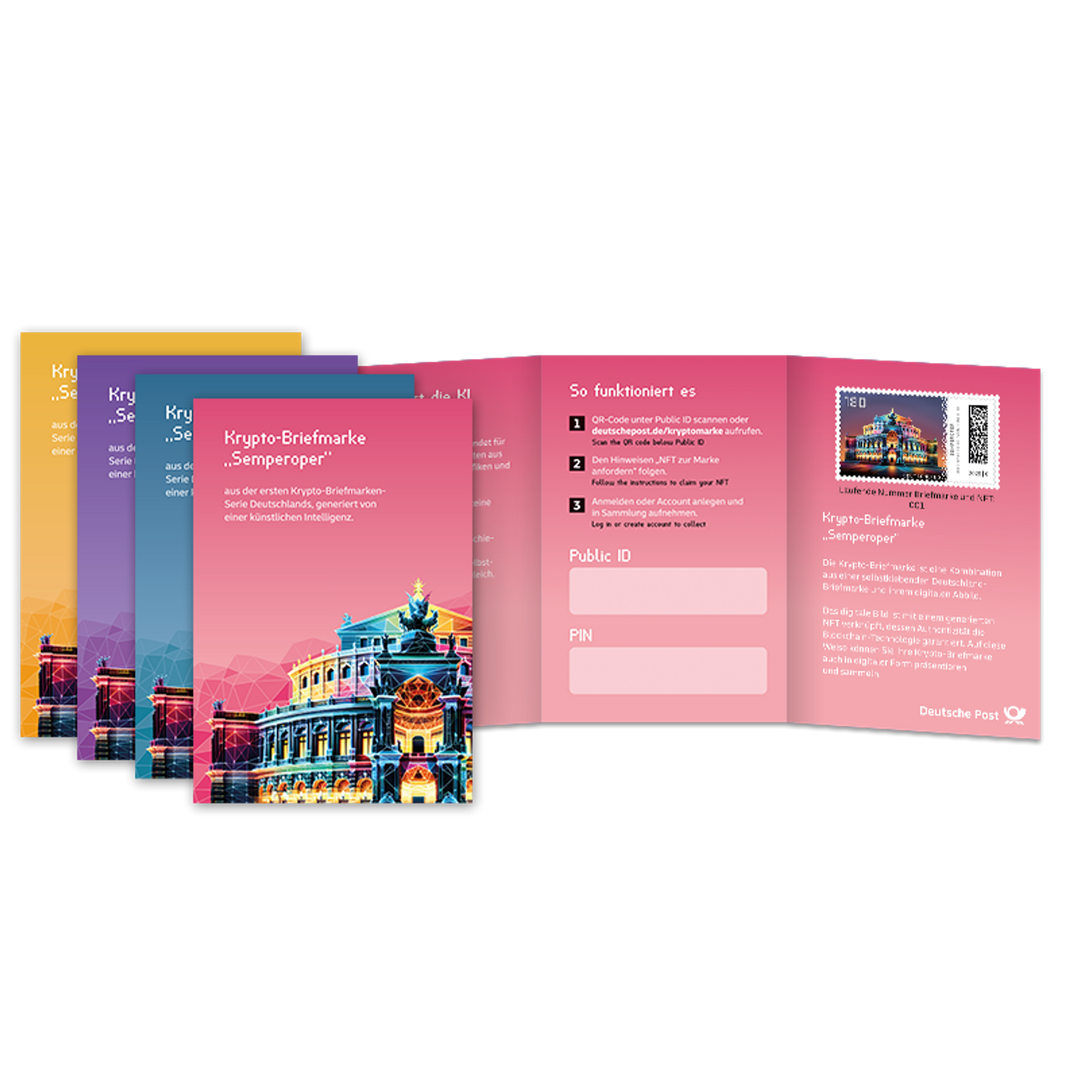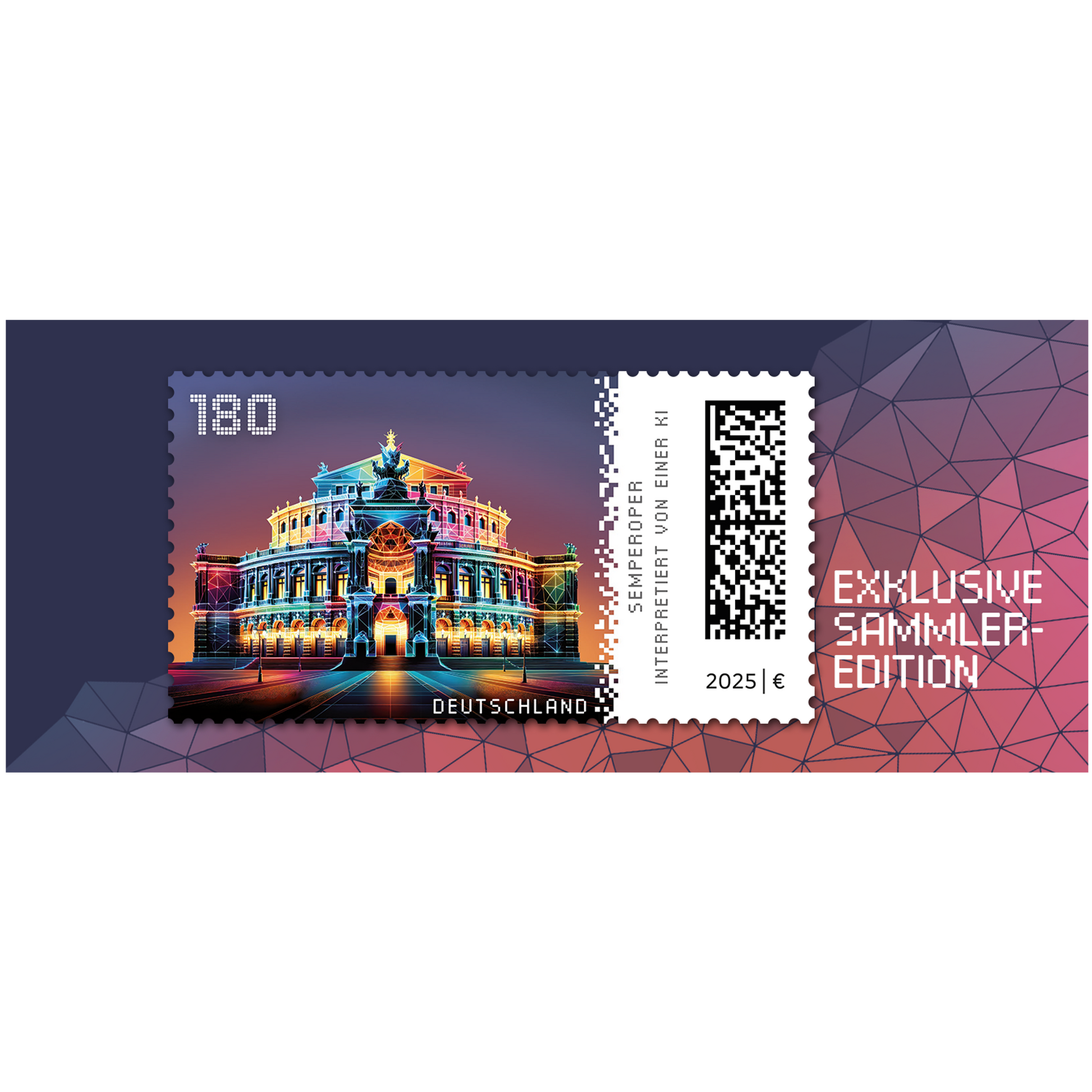 Deutsche Post – Semperoper Dresden. The fifth edition enhances the series with an additional highlight of historic buildings in Germany. The new crypto stamp features an AI-generated image of the "Semperoper," which is a landmark of the city of Dresden.. Since the 18th century, Dresden has been one of the European music capitals and has had a permanent opera house since 1667. The Semperoper represents its cultural significance with many important performances.